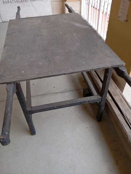 Fából faragott halottszállító asztal, más néven Szent Mihály lova vagy Szent Mihály saroglyája.
